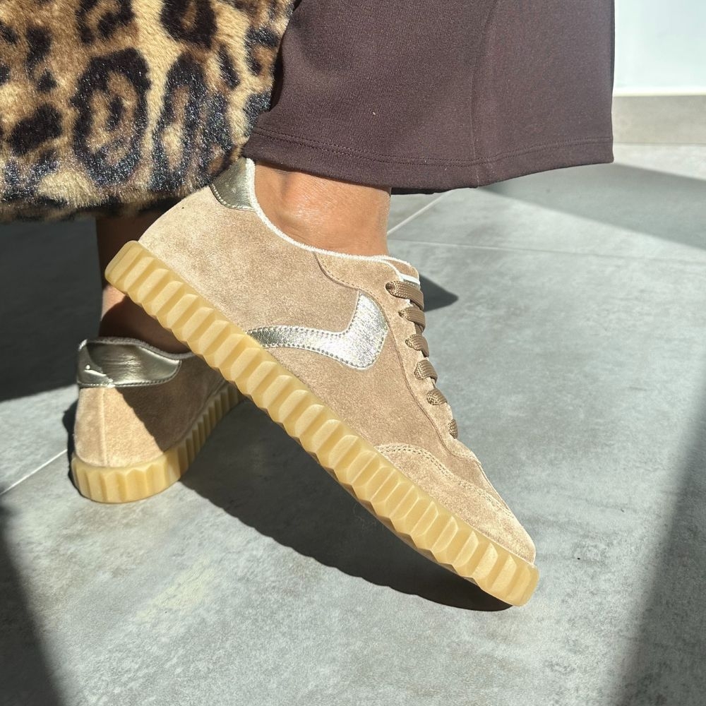 Las zapatillas INES de Voile Blanche en marrón platino combinan la elegancia del cuero con la suavidad del ante, creando un diseño moderno y versátil que se adapta a cualquier estilo urbano. Su silueta deportiva refinada permite llevarlas tanto en looks casuales como en conjuntos más sofisticados. Cada detalle refleja la calidad premium del calzado italiano, asegurando durabilidad y confort a cada paso.
