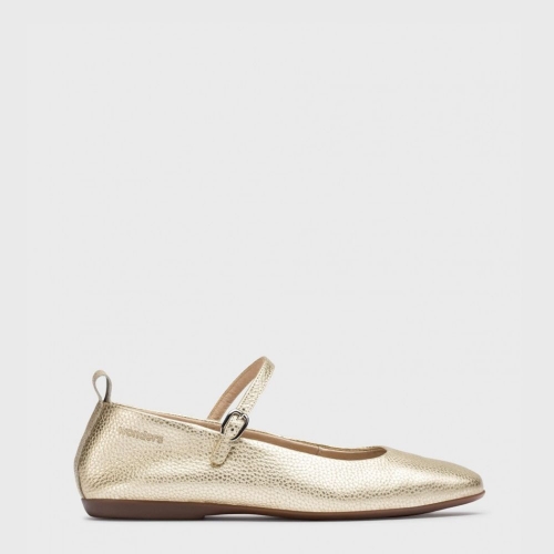Mercedita plana de piel metalizada color platino. Un diseño contemporáneo de punta cuadrada, con tira trasera para un mejor calce y cierre mediante tira delantera con cierre ajustable.Su plantilla Memory Gel proporciona un extra de comodidad, asegurando confort a lo largo del día. Añade elegancia a tus pasos con nuestra bailarina Seúl.