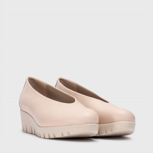 Zapatos con cuña FLY, confeccionados en piel texturizada color rosa palo. Este modelo clásico y atemporal presenta un escote alto y punta redonda, siendo uno de los icónicos de Wonders. La suela desarrollada con tecnología WondersFly™ asegura ligereza incomparable, mientras que la plantilla interior de MemoryGel garantiza comodidad en cada paso. Prepárate para la sensación #YesWeFly. Wonders apoya la fabricación responsable avalada por LEATHERWORKINGGROUP.